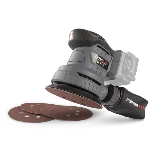 BRUSILICA EKSCENTRIČNA 125 MM AKU 18 V SOLO POWEB4010 rotirajuća brusilica opremljena je brusnom pločom od 125 mm i opremljena je sistemom kuka i petlji.