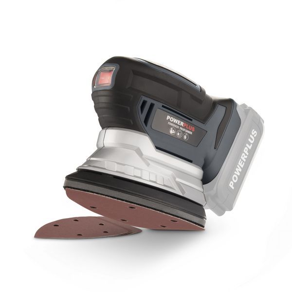 Njegova ploča za brušenje u obliku ravnog gvožđa dolazi sa samoljepljivim sistemom kukica i petlji.