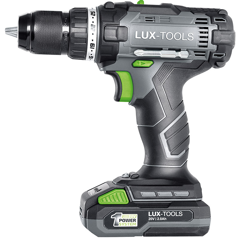 LUX-TOOLS akumulatorska bušilica-odvijač A-BS-20 vaš je svestrani partner za snažno zatezanje i lako odvrtanje vijaka kao i za bušenje. Služi kao pouzdan sveobuhvatni alat u izradi namještaja, stolarije i drugih hobija i samostalnih radova. Aku odvijač opremljen je visokokvalitetnom litijum-jonskom baterijom snage 20 V i punjačem. Kapacitet baterije je 2 Ah i odlikuje je izdržljivost bez samopražnjenja. Odvijač je dio LUX 1 PowerSystem-a. Možete koristiti bateriju sa svim uređajima iz ove praktične serije. Vrijeme punjenja brzog punjača je samo 1 sat.