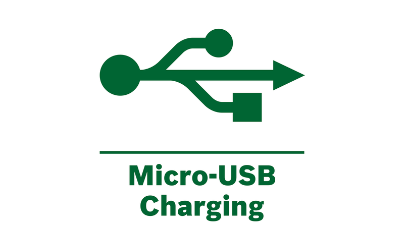 Akumulatorski alat s litij-ionskim akumulatorom koji se može ponovno puniti putem mikro USB kabela.