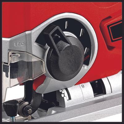 LED svjetlo za osvjetljavanje područja rezanja zajedno s praktičnom funkcijom otpuhavanja prašine osiguravaju da korisnik u svakom trenutku ima savršen pogled na radni komad. Isporučuje se bez baterije i punjača. Oni su dostupni zasebno.