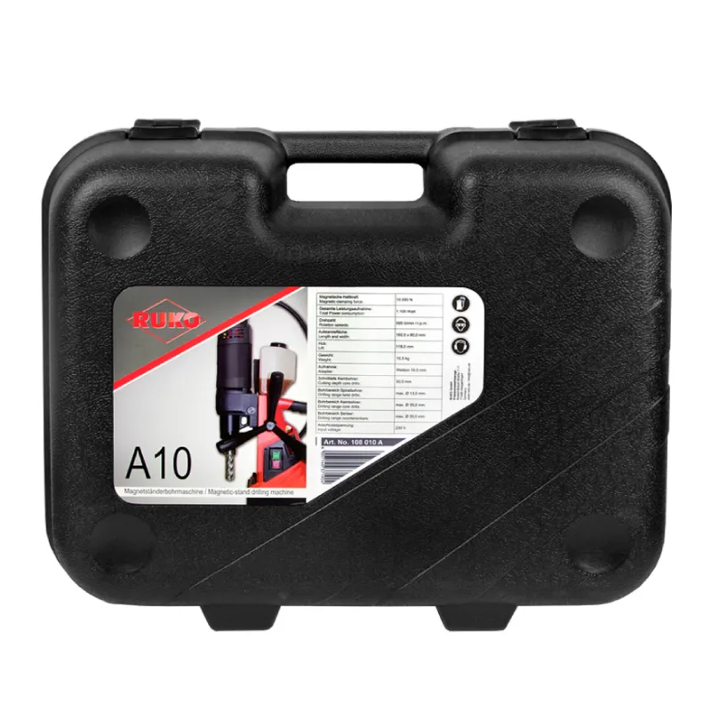 Bušilica Magnetna Ruko A10 ima mogućnost glodanja do 35mm te bušenje krunskim svrdlima (kernborerina) 12-35mm ili klasičnim svrdlima DIN338 do 13mm.