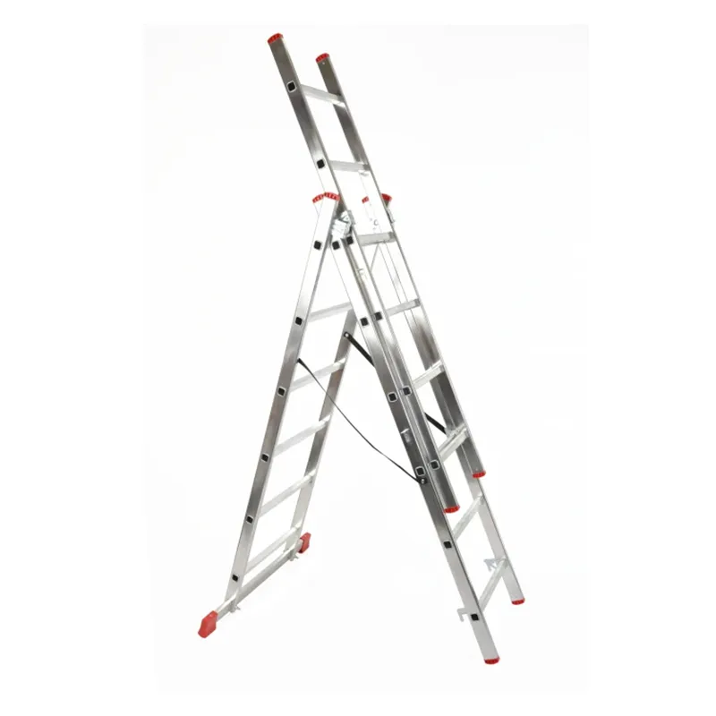 Kombinovane ljestve s 3 sekcije idealne su za sve vrste radova na visini. Ove višenamjenske ljestve omogućavaju upotrebu kao naslonjene ljestve, ljestve u obliku slova “A” ili kao produžene ljestve za maksimalan doseg.
