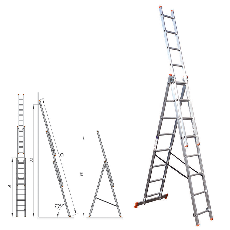 LJESTVE KOMBINOVANE 3SEKCIJE 2m 3X7 GAZIŠTA su ljestve STS, izrađene od aluminijuma sa nosivosti do 150kg.