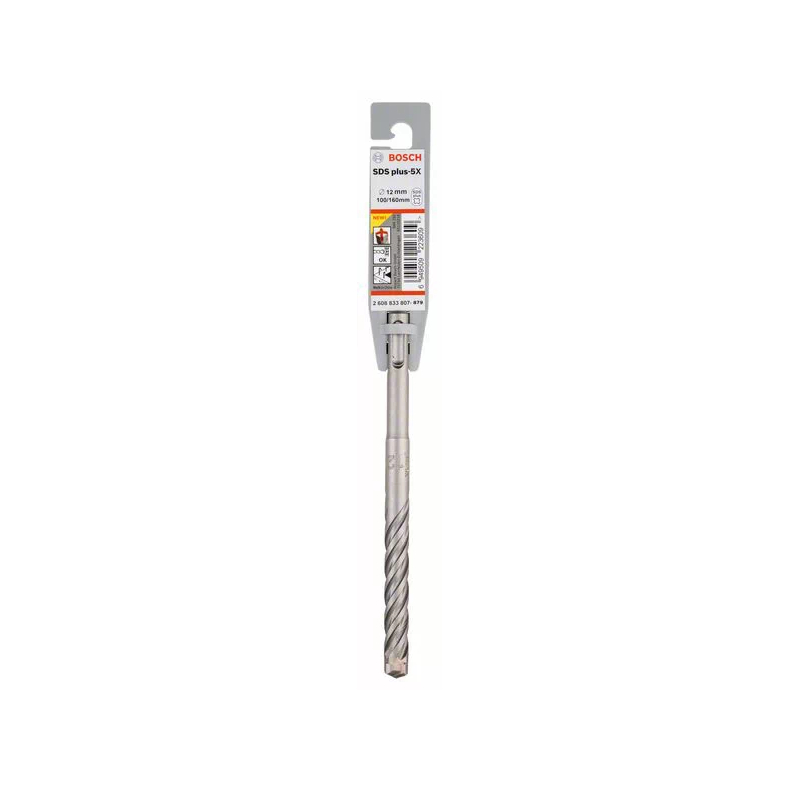 SDS plus-5X svrdlo osigurava visokoučinkovito bušenje u armiranom betonu. Geometrijski oblik glave s 4 oštrice sprječava zaglavljivanje i pucanje za optimalne rezultate. Asimetrični oblik glave, utori spirale velikog promjera za odvođenje prašine unutar 4-spiralnog dizajna osiguravaju brzo uklanjanje prašine kako bi svrdlo imalo učinkovitiji napredak kroz beton i armaturu. Za učinkovit rad i točne promjere provrta vrh za centriranje vodi svrdlo od početka bušenja kako bi spriječio vrludanje zbog čega bi moglo doći do krivog promjera provrta. Svrdlo je namijenjeno za upotrebu na zidovima, betonu i armiranom betonu. Kompatibilno je s bušaćim čekićima sa SDS plus prihvatom.