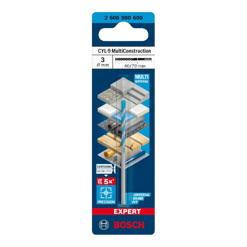 - Bosch EXPERT CYL-9 MultiConstruction cilindrična burgija je burgija koja bi uvek trebalo da vam stoji u kutiji sa alatom: nikada se nećete zaglaviti na poslu niti gubiti vreme tražeći pravu burgiju