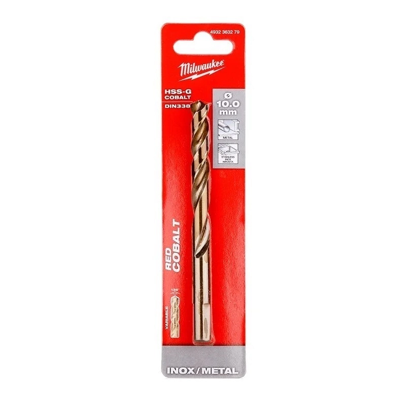BORER RED COBALT HSS-G 10.0 mm DIN 338 MILWAUKEE 4932363279 – pogodno za bušenje visokolegiranih čelika i metala s  čvrstoćom preko 1000 N/mm² poput nehrđajućeg čelika.