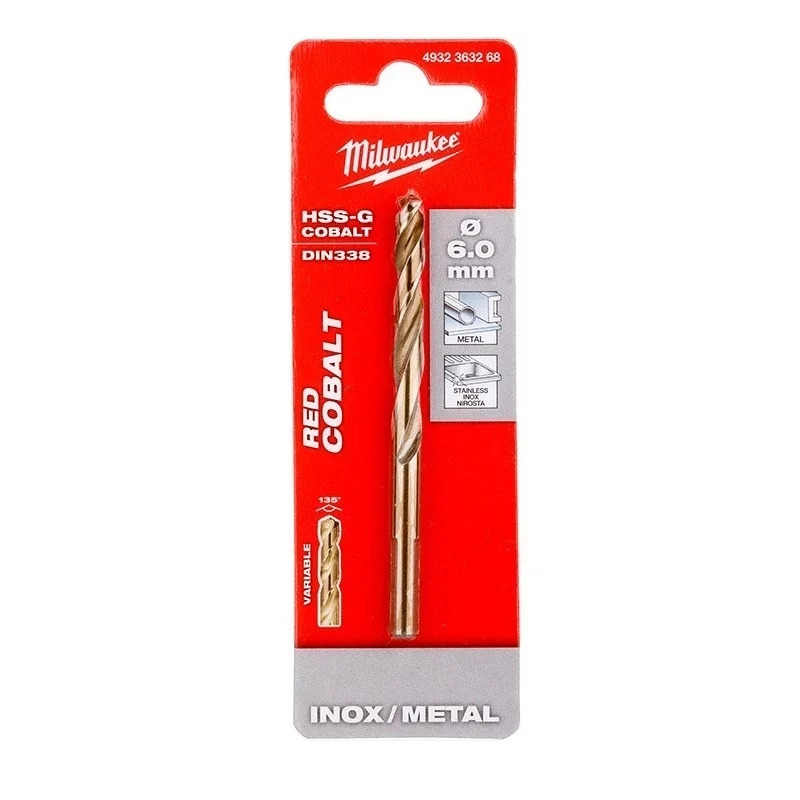 BORER RED COBALT HSS-G 6.0 mm DIN 338 MILWAUKEE 4932363268 – pogodno za bušenje visokolegiranih čelika i metala s čvrstoćom preko 1000 N/mm² poput nehrđajućeg čelika.