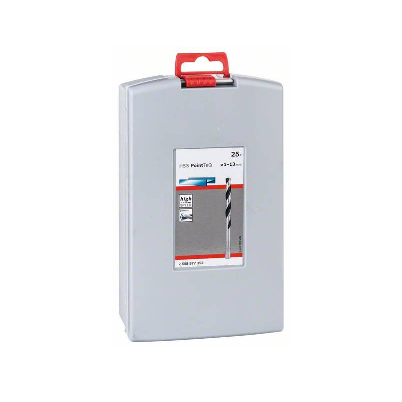 HSS spiralno svrdlo PointTeQ omogućuje brzo bušenje u metalu zahvaljujući konstrukciji PointTeQ vrha svrdla. Brzi i laki počeci bušenja mogući su jer vrh za samostalno centriranje sprječava proklizavanje. Povećanom se brzinom bušenja stvara manje topline te se smanjuje trošenje. Vrh s konstrukcijom PointTeQ ostaje oštar i osigurava kontinuiranu izdržljivost. Ovo je svrdlo prikladno za bušenje zazora i otvora za centriranje u legiranom i nelegiranom čeliku, obojenim metalima, lijevanom čeliku, lijevanom željezu i plastici. Cilindrični prihvat svrdla (promjer prihvata jednak promjeru svrdla) a namijenjeno je za stacionarno bušenje i bušenje s akumulatorskim izvijačima