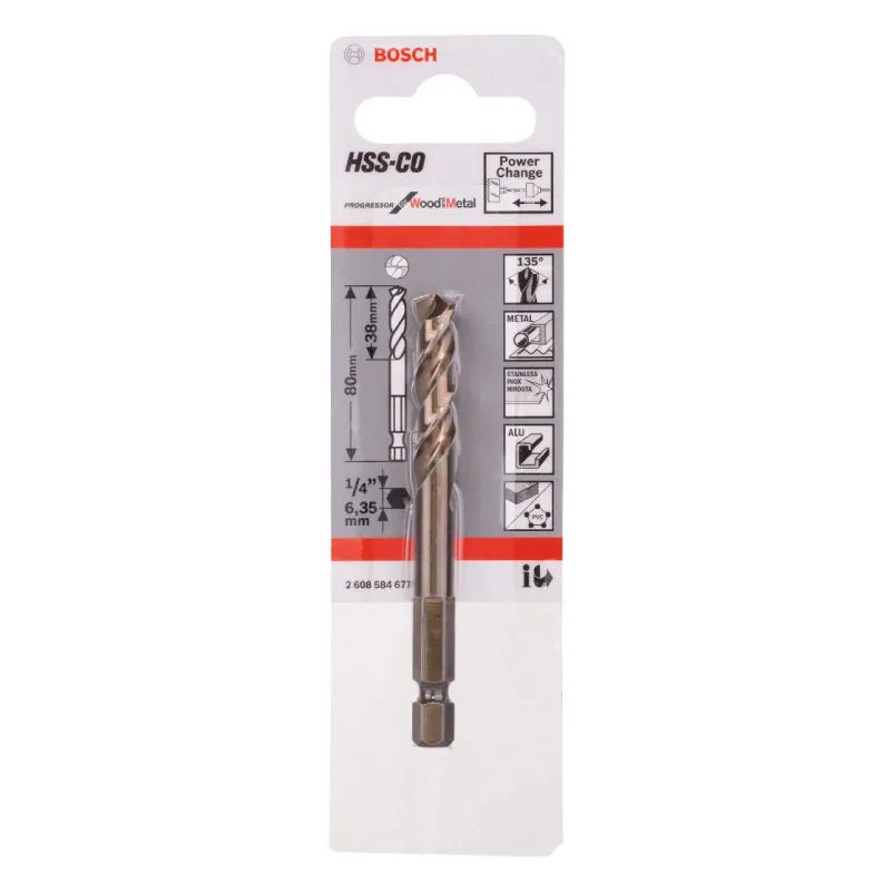 Kobalt povećava tvrdoću, otpornost na visoke temperature i trajnost alata, čineći ga pogodnim za bušenje u tvrdim materijalima poput visokolegiranog čelika, inoxa, titanijuma i drugih zahtjevnih materijala.