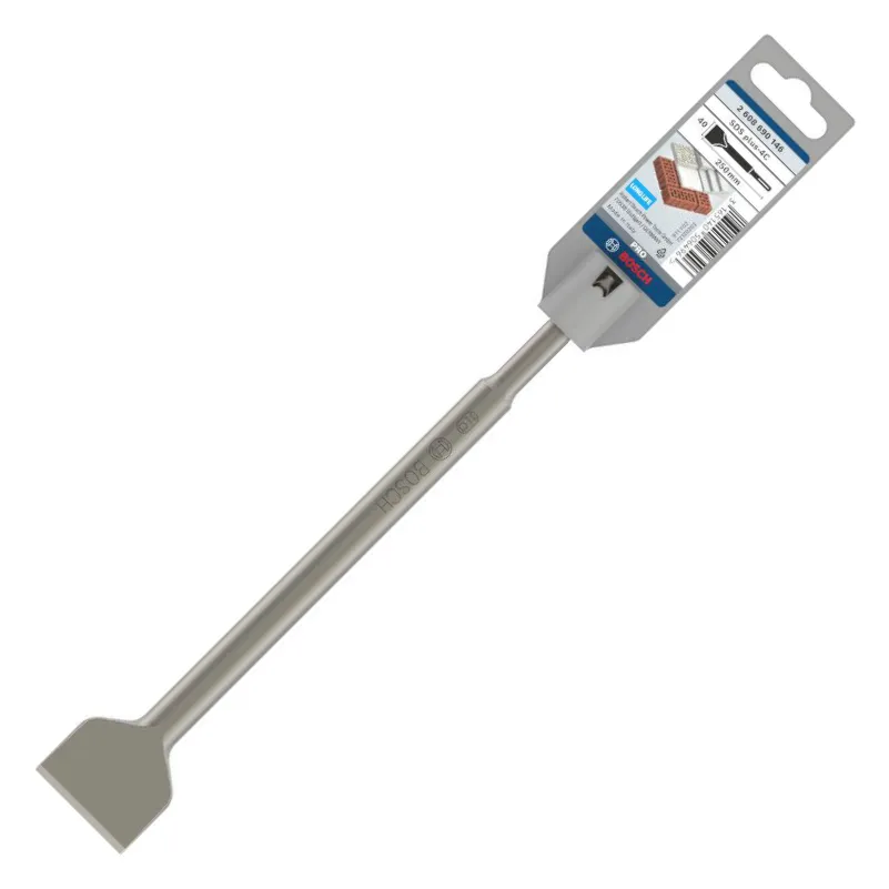 Bosch PRO SDS plus-4C Lopatasto Dleto 40×250 mm je visoko kvalitetno lopatasto dleto, namenjeno za upotrebu u kombinaciji sa SDS plus rotacionim čekićima. Ovaj alat je dizajniran za profesionalne radove u građevinskoj industriji, posebno za lomljenje, uklanjanje materijala i obavljanje teških demontažnih poslova na betonu, kamenju i drugim tvrdim materijalima.