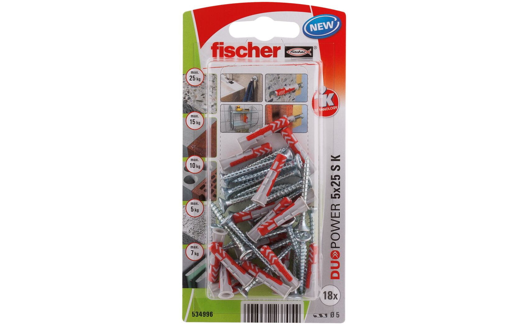 Fischer DuoPower nudi vrlo dobre vrijednosti držanja kao rezultat svoje 2 komponente: Ovisno o građevinskom materijalu, sive komponente izrađene od visokokvalitetnog najlona automatski aktiviraju optimalnu funkciju proizvoda (širenje, preklapanje, vezivanje) za najbolje držanje. Krila za proširenje crvene komponente podržavaju sigurno širenje i nude dodatnu sigurnost sivoj komponenti. Lako uvrtanje vijka i pravilno “zatezanje” za zatvaranje. Nema pretjeranog zatezanja vijaka. Unaprijed oblikovani rub na glavi tipla sprječava klizanje tipla u probušenu rupu.