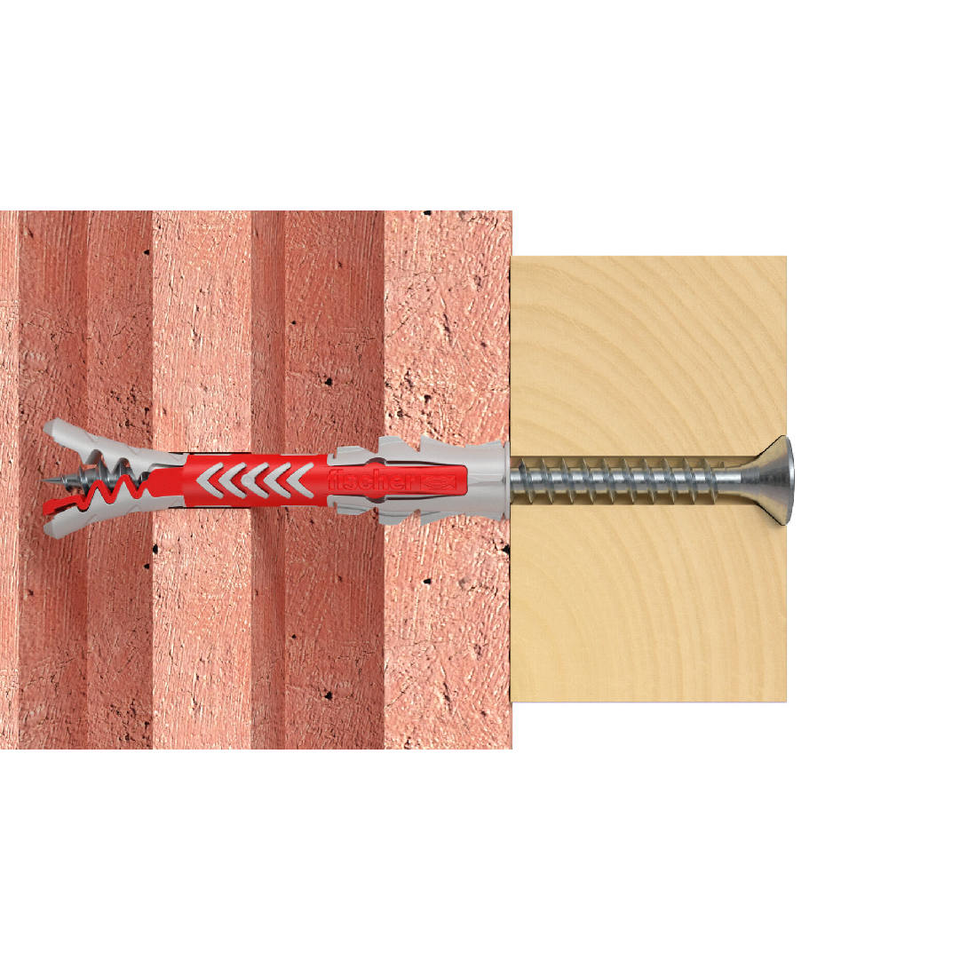 Fischer DuoPower nudi vrlo dobre vrijednosti držanja kao rezultat svoje 2 komponente: Ovisno o građevinskom materijalu, sive komponente izrađene od visokokvalitetnog najlona automatski aktiviraju optimalnu funkciju proizvoda (širenje, preklapanje, vezivanje) za najbolje držanje. Krila za proširenje crvene komponente podržavaju sigurno širenje i nude dodatnu sigurnost sivoj komponenti. Lako uvrtanje vijka i pravilno “zatezanje” za zatvaranje. Nema pretjeranog zatezanja vijaka. Unaprijed oblikovani rub na glavi tipla sprječava klizanje tipla u probušenu rupu.
