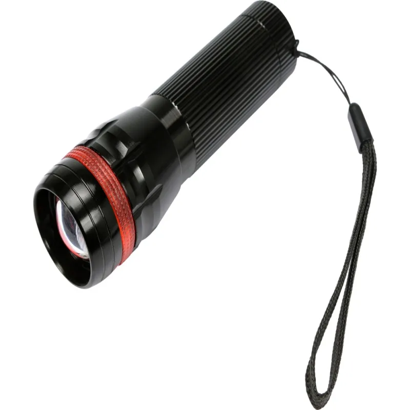 Prednja svjetiljka opremljena je učinkovitom diodom snage 3 W koja osigurava svjetlosni tok od 150 lm. Ima tri načina osvjetljenja: osnovni, ekonomičan i pulsirajući. Glatko podesivi zum omogućuje vam jednostavno podešavanje udaljenosti i veličine potrebnog svjetlosnog toka. Svjetiljka ima lagano i izdržljivo aluminijsko kućište s remenom za ruku te može poslužiti i kao ručna svjetiljka. Napaja se s 3 AAA baterije koje nisu priložene uz set.