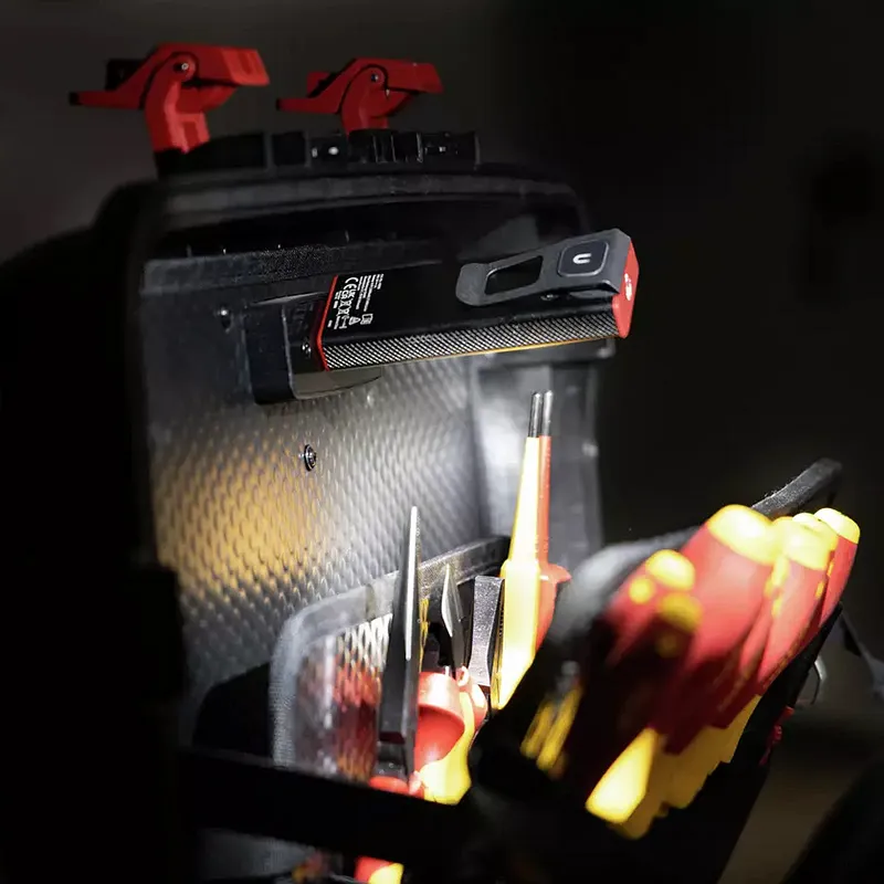 • Praktičnost: Dva snažna magneta na stražnjoj i donjoj strani, zajedno s kopčom za remen, omogućuju jednostavno pričvršćivanje na metalne površine ili odjeću, oslobađajući ruke tijekom rada.