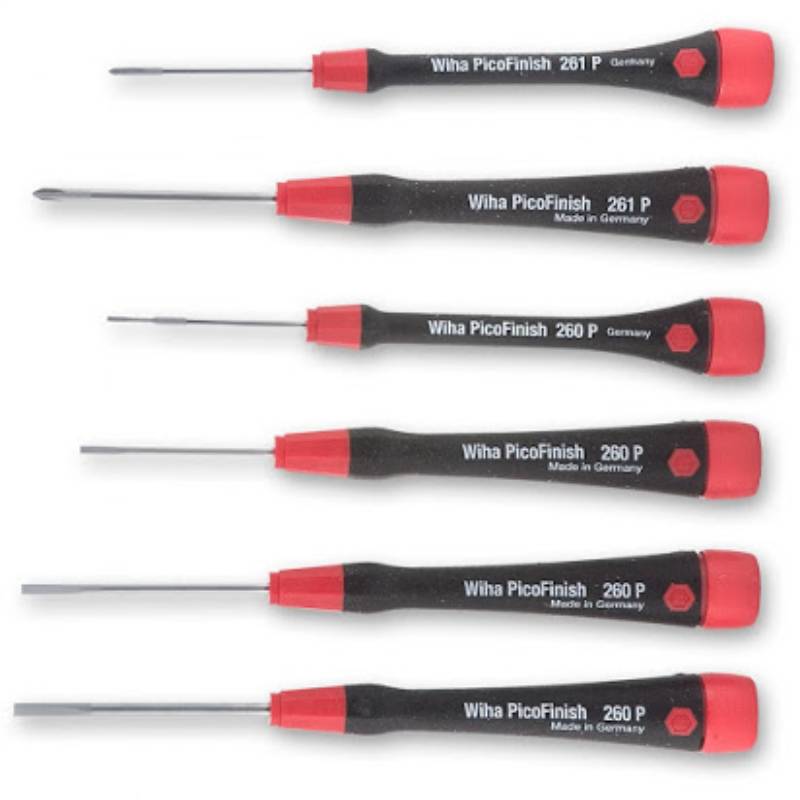 Izazov preciznih mehaničkih vijčanih spojeva je raditi precizno i osjetljivo bez oštećenja izratka. Precizni odvijači PicoFinish® tvrtke Wiha idealni su za fini i filigranski rad u preciznoj mehanici, kao i u hobiju i proizvodnji modela, zahvaljujući svojim dugim, tankim ručkama i zoni brzog okretanja. Ergonomski dizajn ručke s mekanom zonom omogućuje ugodan rad. Osjetljivo i brzo okretanje podržano je glatkim okretanjem poklopca. Nadalje, simboli odvijača otisnuti na rotirajućoj kapici olakšavaju odabir ispravnog profila odvijača. Set uključuje 6 odvijača PicoFinish® i držač. S ovim posljednjim, precizni odvijači mogu se uredno pohraniti na radno mjesto.