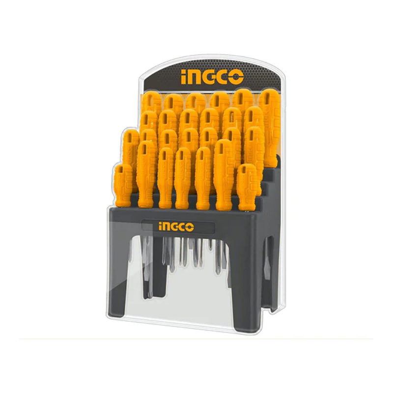 SET IZVIJAČA 26/1 HKSD2658 INGCO je sveobuhvatan set od 26 odvijača, namenjen profesionalcima, entuzijastima i kućnim majstorima. Izrađen od visokokvalitetnog hrom-vanadijum (Cr-V) čelika, ovaj set obuhvata različite tipove i veličine odvijača, što ga čini idealnim za širok spektar zadataka.