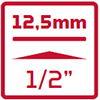 Red Gedore nasadni ključ izrađen od Chrom-Vanadium čelika. Jedan dio završnog sloja je mat, a drugi dio sjajni (poliran). Izrađen prema DIN 3124, ISO 2725. Kvadratni dio (prihvat) 1/2” DIN 3120, ISO 1174, s utorom za zadržavanje kuglice.