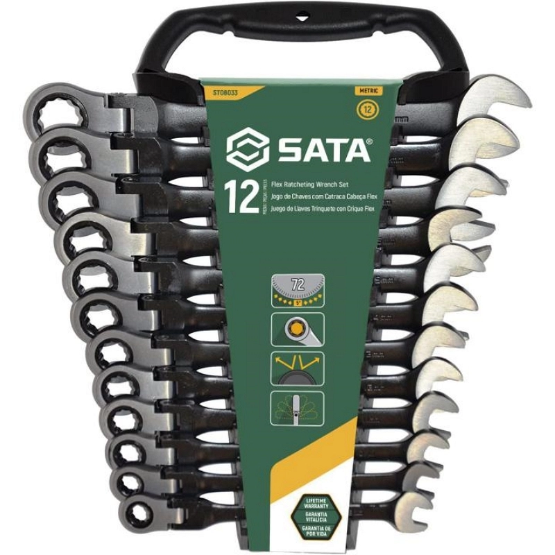 SET ZGLOBNIH VIL-OK KLJUČEVA SA ZUJALICOM 8-19 MM 12 KOMADA SATA ST08033 je visokokvalitetan, profesionalni set od 12 fleksibilnih nasadnih ključeva sa zujalicom (8–19 mm). Dizajniran je da olakša rad u uskim prostorima zahvaljujući 5° zakretu, off‑corner konstrukciji, te crnoj (black) završnoj obradi koja pomaže u zaštiti od korozije. Alati su izdržljivi — izrađeni od krom‑vanadijum čelika, sa jasno graviranim oznakama i praktičnim koferom/držačem. Idealni su za mehaničare, servisere i sve koji traže kombinaciju preciznosti i efikasnosti.