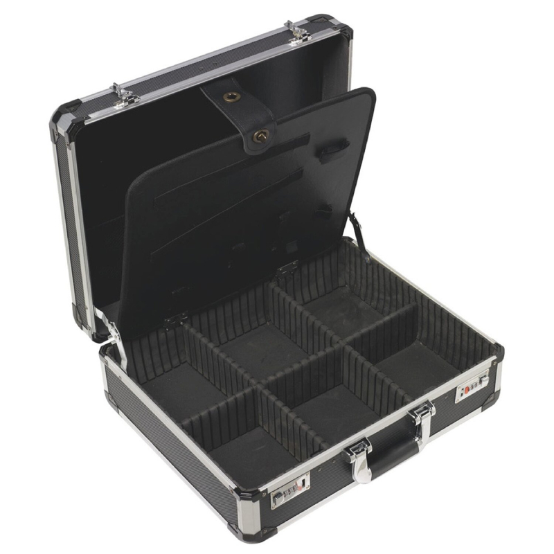 Crni kofer za alat proizvođača Lux-Tools sa ugrađenom šifrom za otvaranje kofera.