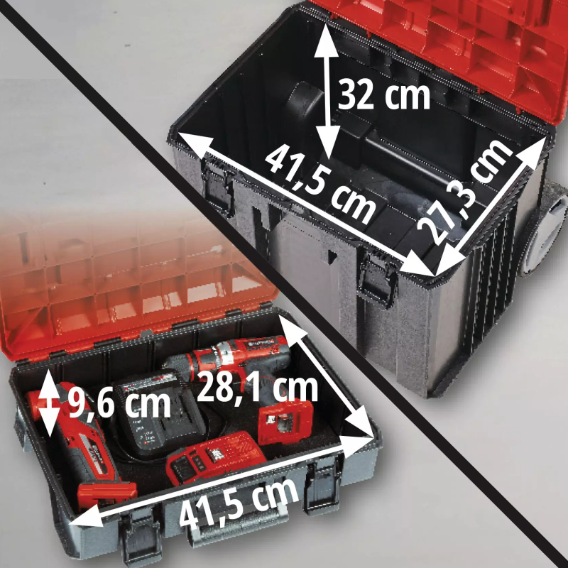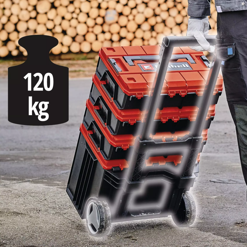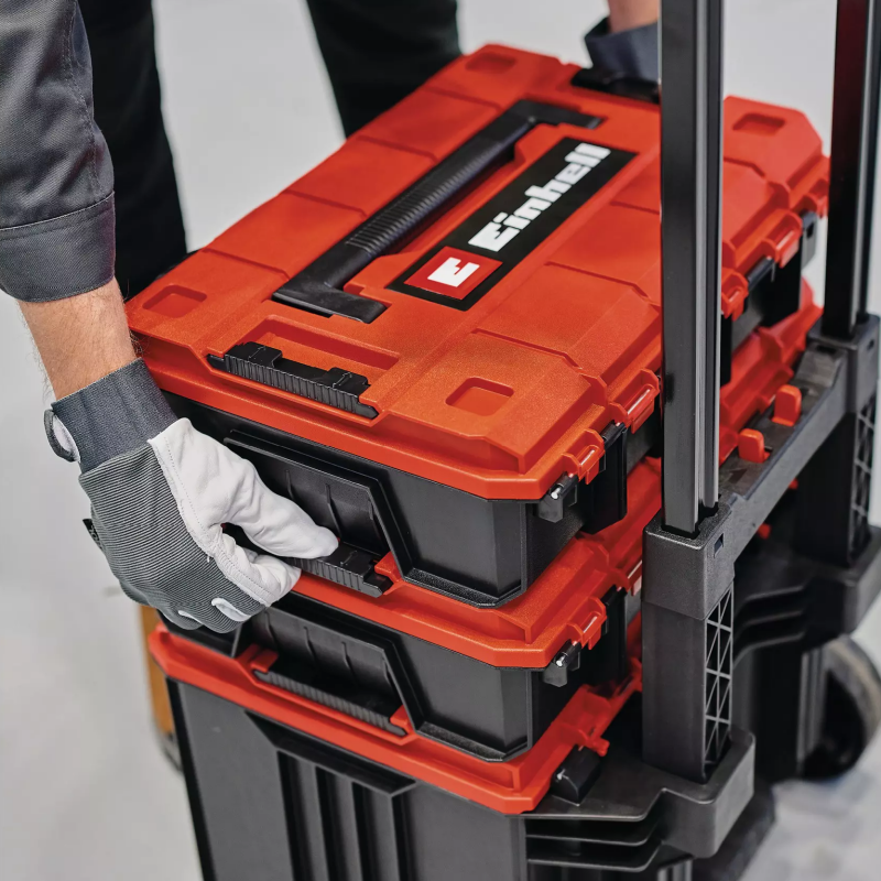 KOFER ZA ALAT S TOČKOVIMA E – CASE TOWER EINHELL je dio modularnog E-Case sistema i idealan je za čuvanje i transport opreme, alata, dodataka i drugih predmeta. Praktičan sistem zaključavanja za povezivanje naslaganih kofera osigurava sistematski red prilikom skladištenja i omogućava siguran transport. Koferi su izrađeni od robusnog polipropilena, što im daje visoku čvrstoću, otpornost na toplinu i otpornost na udarce. Čvrsta konstrukcija omogućava ukupno opterećenje do 120 kg.