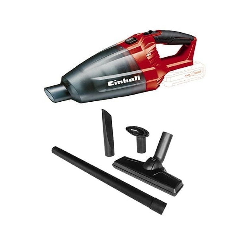 AKU USISIVAČ RUČNI PXC TE-VC 18 Li-Solo uvijek je spreman pri ruci za uklanjanje prljavštine i dosadnih mrvica, bilo na tepihu, kauču ili stolu. Praktična snaga dio je Einhellove dokazane obitelji Power X-Change. Baterije ove serije mogu se koristiti u svim uređajima iz obitelji sustava. Kratki dometi, bezbrojne baterije i punjača i loše performanse stvar su prošlosti. Aku ručni usisavač u trenu čisti svaku površinu zahvaljujući tri mlaznice, koje su uključene u opseg isporuke. Podna mlaznica posebno je prikladna za tvrde podove i glatke površine. Druga mlaznica prikladna je za presvlake i tkanine. S mlaznicom za fuge korisnik može bez puno napora očistiti i teško dostupna mjesta. Uz pomoć produžne cijevi duljine 46,5 centimetara, praktični aku usisavač može se koristiti i kao podni usisavač i tako udobno u uspravnom položaju. Spremnik za prašinu ima kapacitet od 540 mililitara. Integrirani zidni nosač osigurava pohranu koja štedi prostor. Isporuka ne uključuje bateriju ili punjač, ​​oni su dostupni zasebno, na primjer kao praktičan početni set.