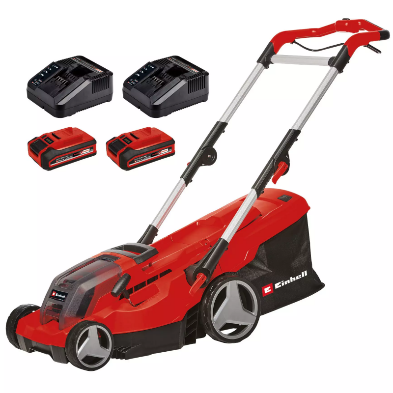 AKU KOSILICA U SETU S PUNJAČIMA I BATERIJAMA GE-CM 36/37 Li 2×3,0Ah EINHELL – aku kosilica preporučuje se za travnjake do 400 m². Prilagodba visine košnje u šest razina od 25 do 75 mm i širina košnje do 37 cm pružaju vam sve što je potrebno za oblikovanje vašeg travnjaka onako kako želite. Integrirani češalj za travu omogućuje vam košenje trave do rubova.