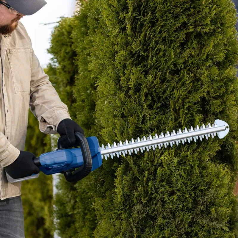 Sa kompaktnim, laganim Scheppach akumulatorskim trimerom za živu ogradu ŠKARE AKU ZA ŽIVICU C-HT570-X, živice i grmlje se mogu brzo i jednostavno vratiti u formu. Laserski rezan nož dvostrukog djelovanja sa aluminijskom vodilicom s metalnim graničnikom osigurava precizne, čiste rezultate rezanja. Dvoručni sigurnosni prekidač sa brzim zaustavljanjem omogućava siguran rad. Kao dio Scheppach IXES 20-voltne serije, sve baterije i punjači iz serije sistema mogu se kombinovati