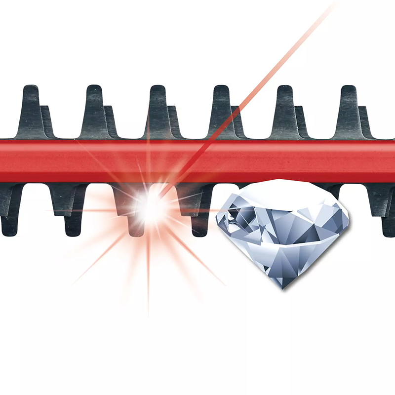 Zahvaljujući razmaku zubaca od 20 cm, duljini mača od 56 cm i duljini rezanja od 47 cm, električnim škarama za živicu mogu se