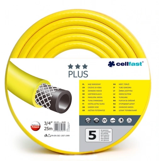 Baštensko crevo iz serije PLUS 3/4 izrađeno je od 3 sloja i dodatno opremljeno izdržljivim ojačanjem od najkvalitetnijeg prediva. Crijevo je otporno na UV zračenje kao i na taloženje algi. Karakterizira ga kombinacija visoke fleksibilnosti i izdržljivosti.