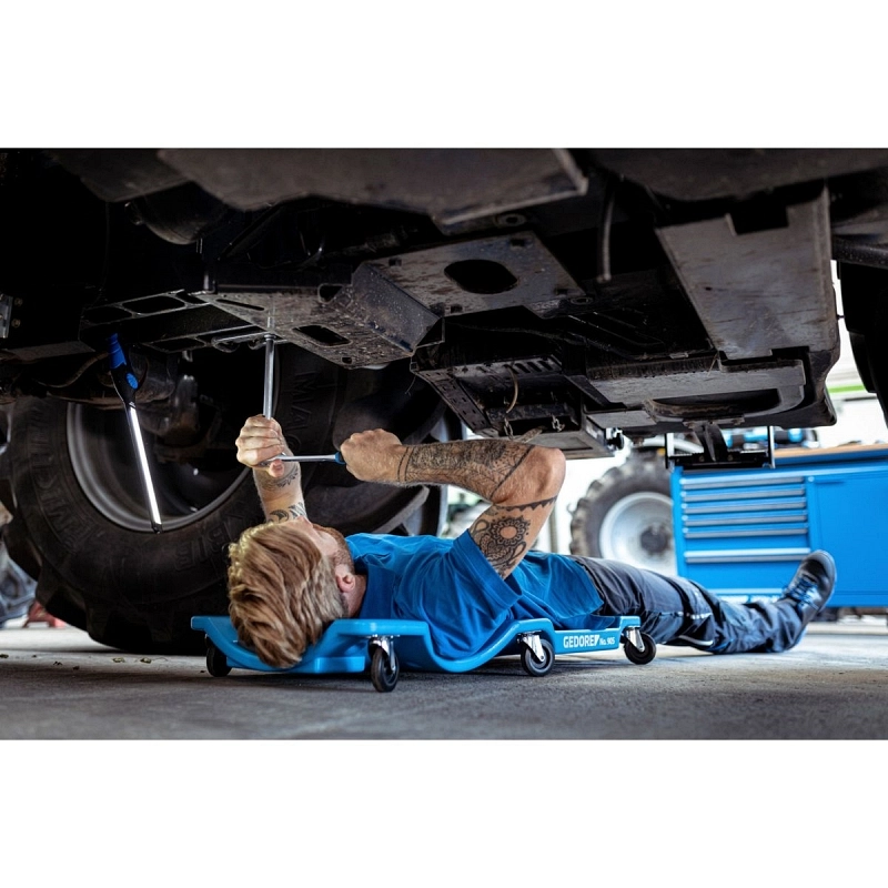 RADIONIČKA LEŽALJKA 130 KG GEDORE 1823698 – Stabilna montažna/radionička ležaljka dobra je pomoć gdje god se posao mora obavljati ležeći. Omogućava rad u ležećem položaju ispod vozila ili ispod mašina uz udobnost i bolji pristup.