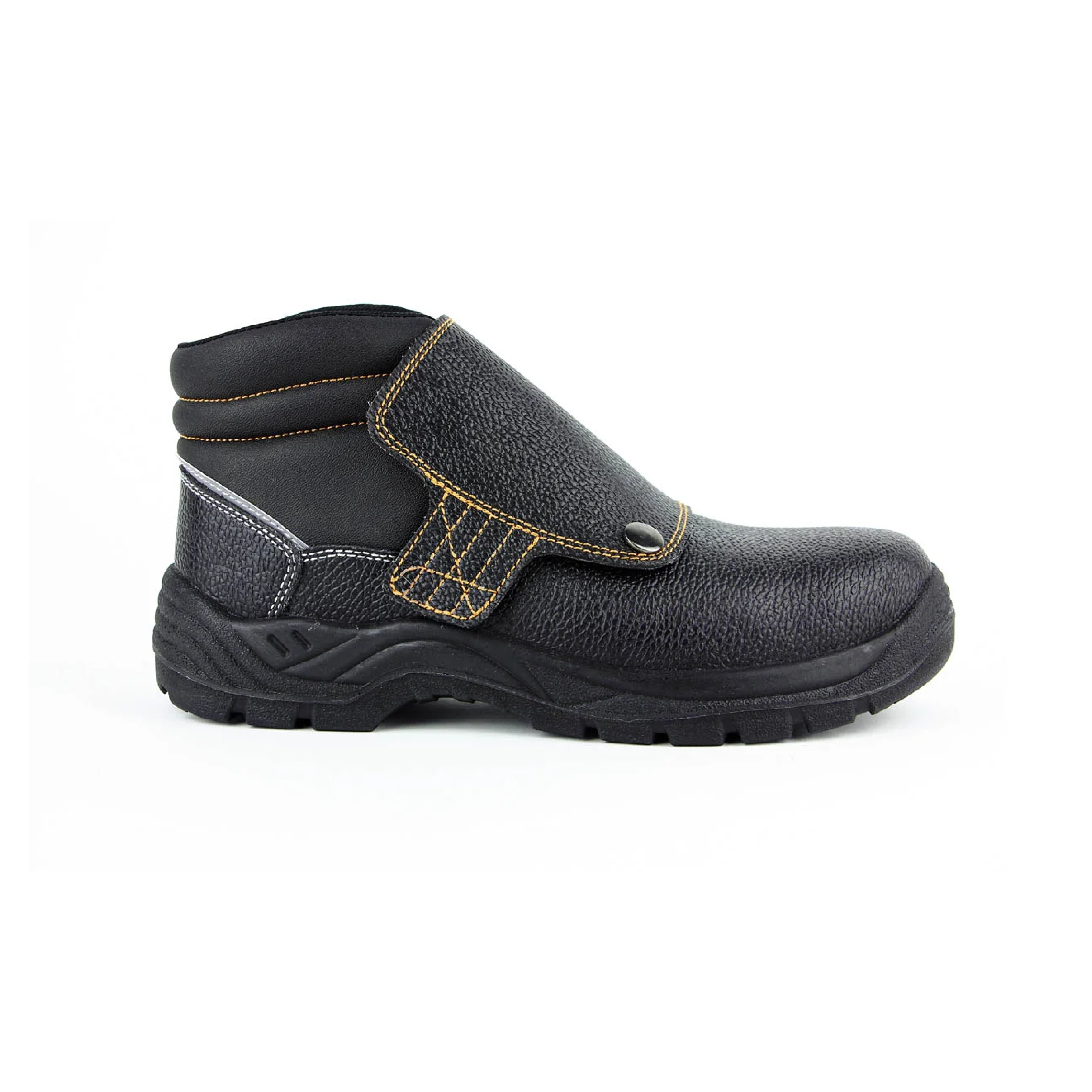 Visoke zaštitne cipele u crnoj koži sa postavljenim jezikom za bolju udobnost i zaštitu savršene za varlilačke poslove