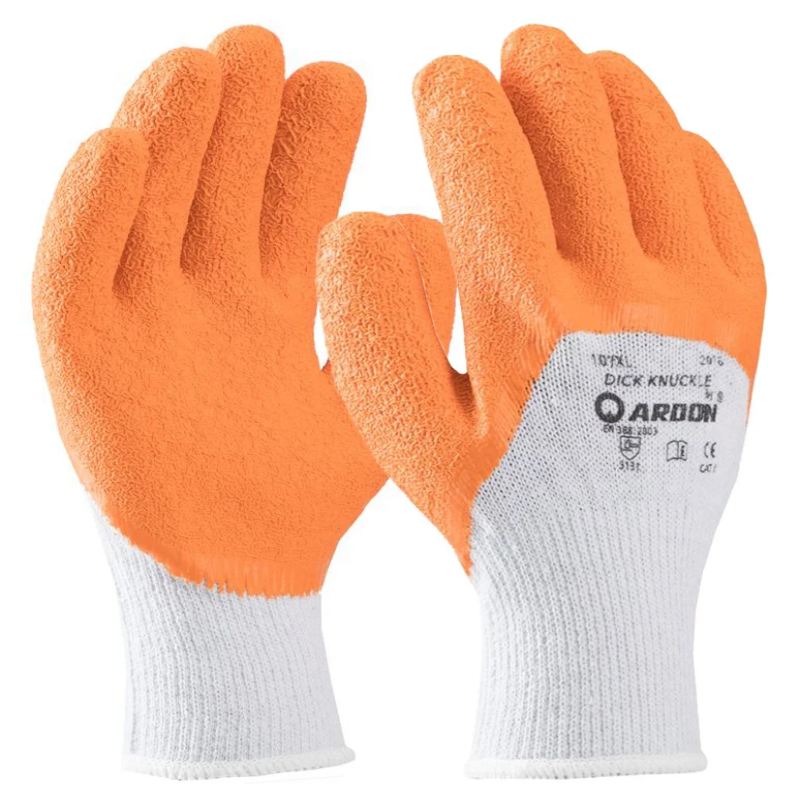 RUKAVICE LATEX DICK KNUCKLE NARANDŽASTE VEL 10 ARDON  je odlična građevinska rukavica sa elastičnom manžetom i narančastim latex premazom, za uporabu u suhim uvjetima.