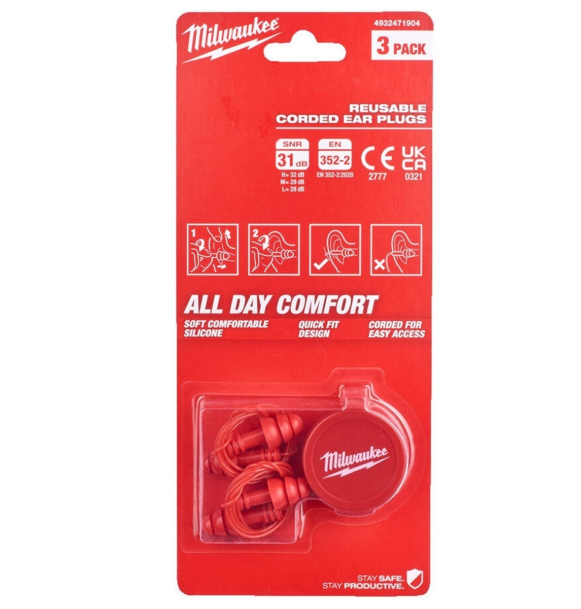 ČEPIĆI ZA UŠI 3/1 MILWAUKEE 4932471904 – višekratni silikonski čepovi za uši (3 para) za učinkovito prigušivanje buke na gradilištu SNR = 31 dB.