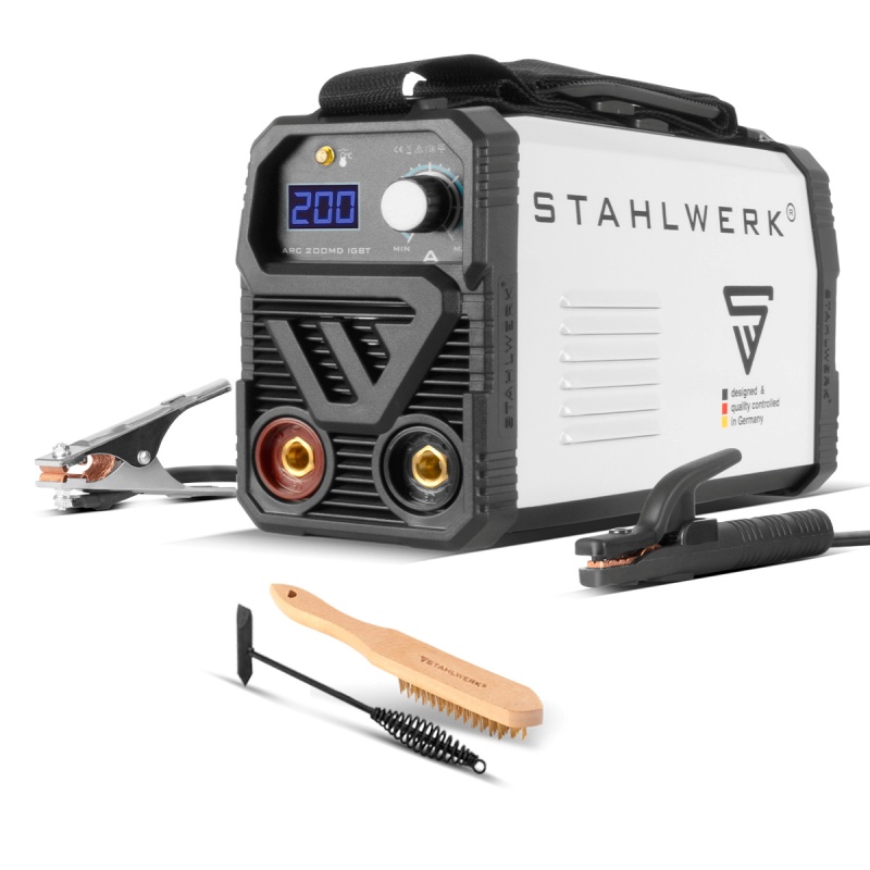 APARAT ZA ZAVARIVANJE ARC 200 MD STAHLWERK 1798-001 uređaj za zavarivanje impresionira sa svojih 200 ampera, jednom pločom i IGBT tehnologijom najnovije generacije. Zahvaljujući kompaktnom dizajnu s integriranom jednom pločom, uređaj se može fleksibilno koristiti bez odricanja od prednosti IGBT tehnologije. Visoka frekvencija preklapanja, stabilne struje zavarivanja i visoka toplinska stabilnost.  Može se pretvoriti u TIG aparat za zavarivanje s lift TIG-om. MMA aparat za zavarivanje također ima pametno hlađenje i zaštitu od pregrijavanja.