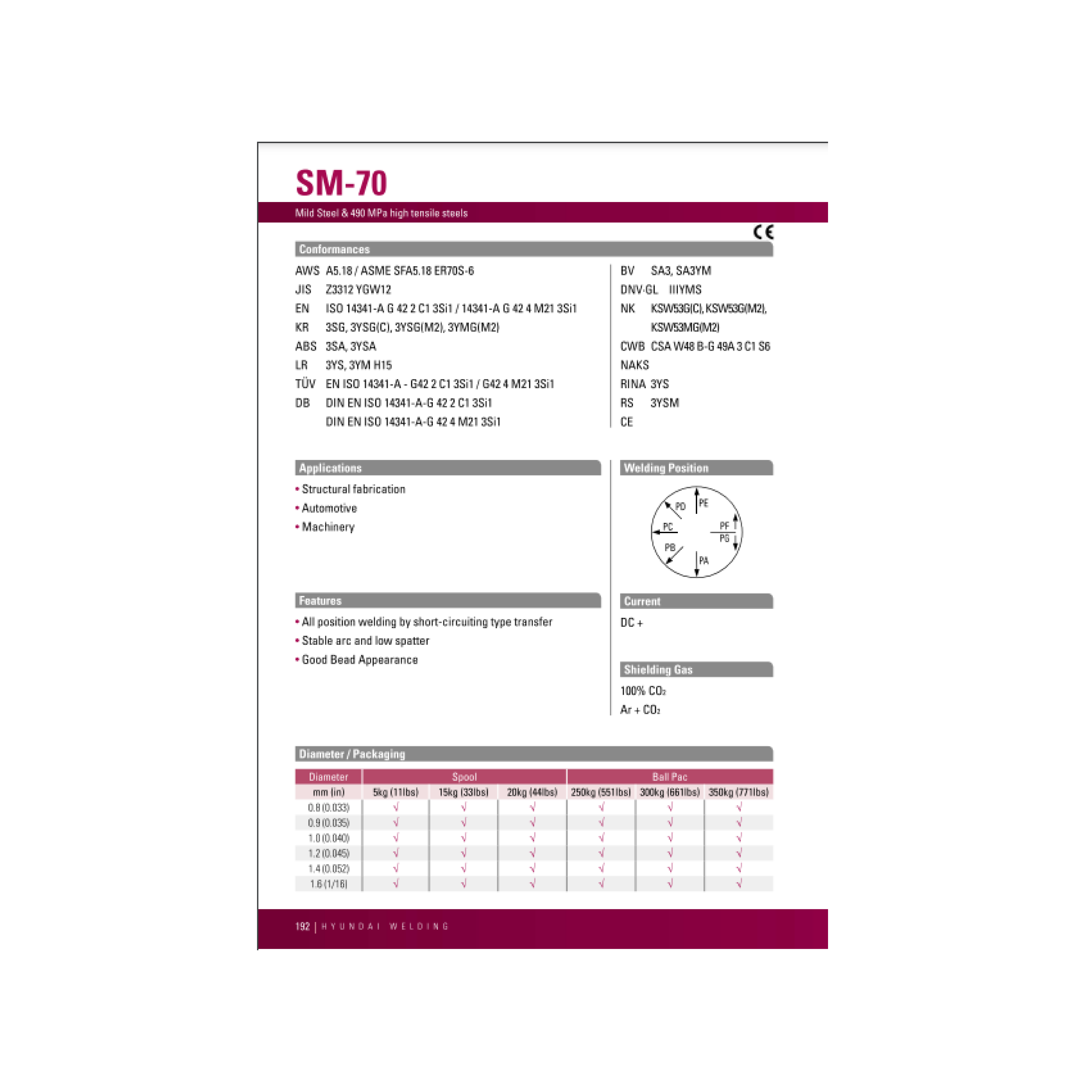 SM-70 je žica pogodna za sve pozicije zavarivanja kod kratkog tipa prijenosa.