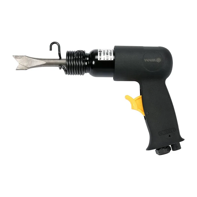 MAJZLO ZRAČNO SET VOREL 81133 je pneumatski čekić dizajniran za zadatke poput rezanja, bušenja i profiliranja u radionicama. Njegova visoka frekvencija i snaga udaraca omogućuju brzi napredak rada, dok male dimenzije omogućuju pristup teško dostupnim mjestima. Čvrsta konstrukcija i kućište jamče trajnost i otpornost, dok zamjenjivi čekići omogućuju prilagodbu vrsti rada. Set uključuje pneumatski čekić, konektor za crijevo, oprugu i četiri čekića.
