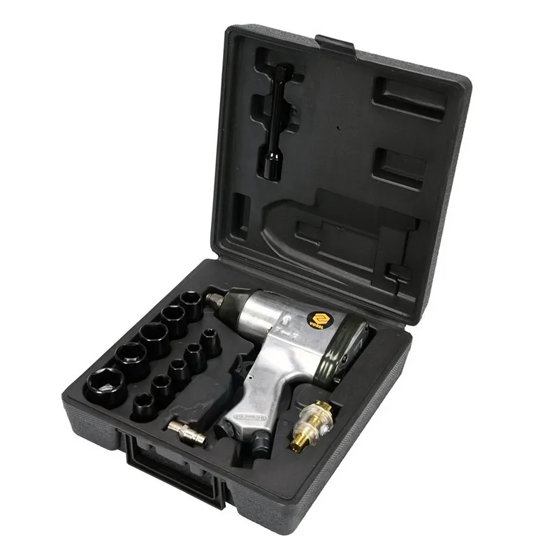 PIŠTOLJ ZRAČNI 340 NM+SET NASTAVAKA VOREL je pneumatski udarni ključ dizajniran za učinkovito zatezanje i otpuštanje vijaka i matica sa setom Vorelov nastavaka za odvijanje.